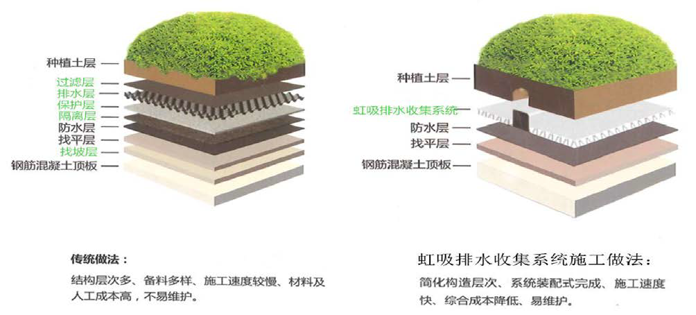 ● 對滲入水進行收集,作為園林灌溉用水,節(jié)約水資源,具有隔水、透氣、保溫功能。